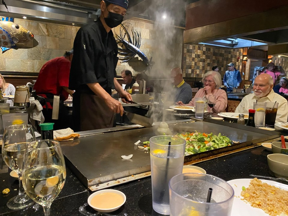 When 15 of the Dunwoody Diners gathered for dinner at Aomi last Saturday, they combined service with pleasure. The skills of the chefs (Japanese Hibachi style cooking) was both a visual delight and a culinary success. At the same time, the group initiated a fundraising effort for the Rotary Ukraine Disaster Relief Fund. The group hopes the rest of the Club will also want to participated. Ken Levy gave a very inspiring speech about the need for humanitarian relief for the victims in Ukraine. His speech raised more than $450. Of particular note, a family sitting nearby contributed $40 based on hearing Ken's appeal.