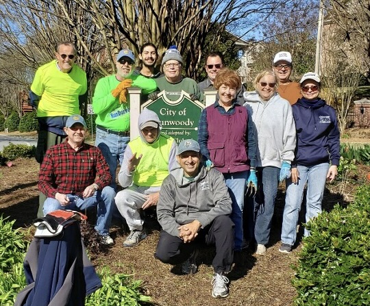 We've all heard about Bounds Garden, the traffic island across from the Dunwoody Library. A week ago Saturday, the place drew a crowd of Dunwoody Rotarians who made quick work of sprucing up the Garden. Thanks to all, and especially to "Ranger" Fred Bounds for leading our efforts.