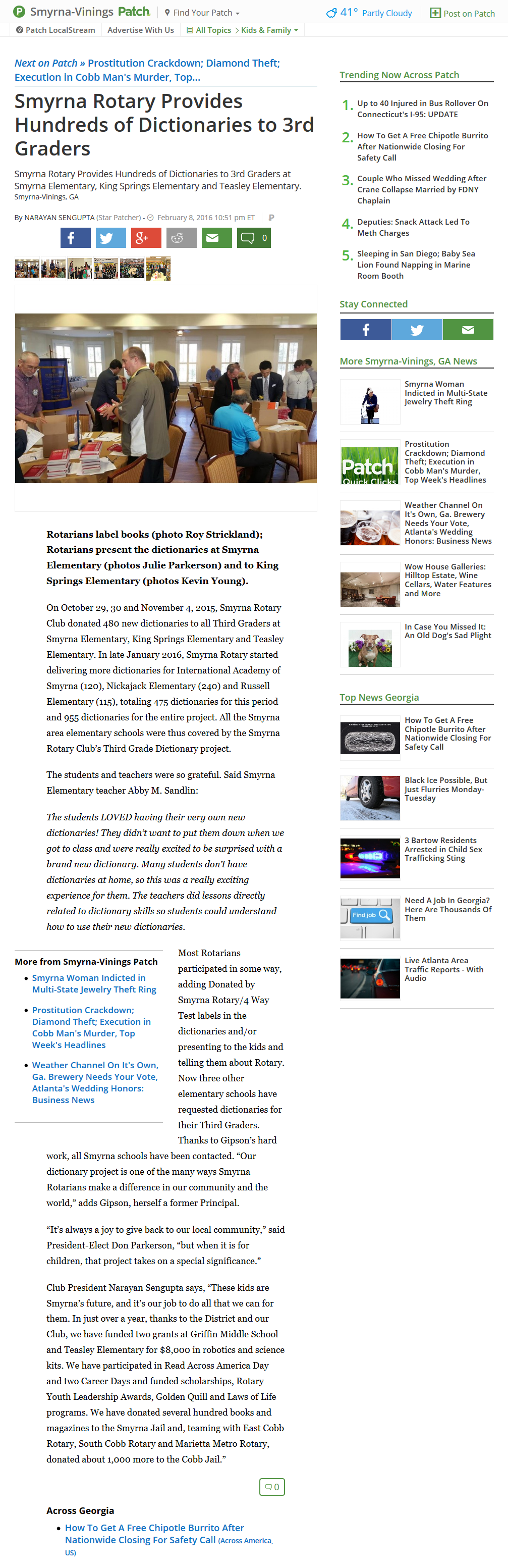Club President Narayan Sengupta will become a contributor to the Smyrna Patch, which will also help us get articles out to the public.