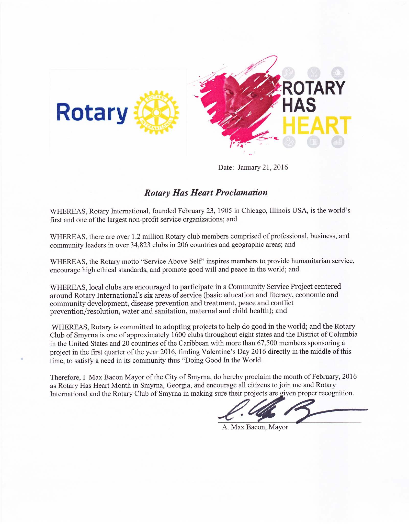 Instead of this being a one day proclamation, the Mayor signed it for the entire month of February 2016.